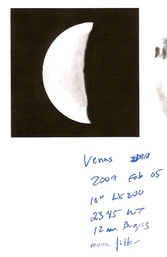 The two sketches below were created during observations (two years after my photograph) showing subtle hints details on Venus.