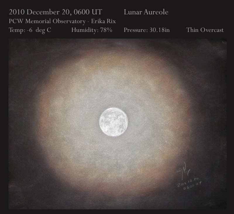 I wanted to sketch the eclipse so thought I could do a quick practice run on the lunar aureole that put on a display through the clouds. It was only after I completed the sketch and checked the date on my computer that I realized I was a day early!