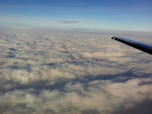 Looking at the photo that Paul took on the January 24th, the clouds were far enough away from the airplane that its shadow was not visible in the middle of the glory. It also looks like there is ~20% variance in water drop size distribution by looking at the lack of rings. I’m unable to estimate the size of the glory, but the angular size of the glory is only determined on the diameter the droplets (as stated above), not how far away the plane is from the clouds.