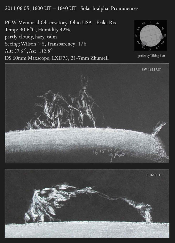2011 06 05 – Prominences and NOAAs 11231, 11228, 11227, 11226