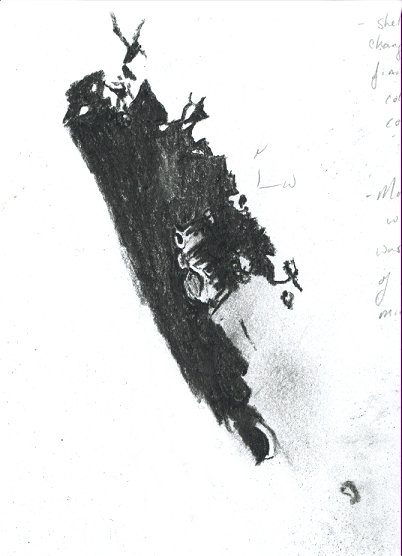 For example, when I began my sketch, Picard’s western edge was visible. Mind you, it only looked like the side view of a soft white curved contact lens. The whole inside and eastern edge of it was already flooded with darkness. Pierce and Swift were quite in their own glory to the North just on the edge of the terminator. The floor of Swift was completely darkened. Pierce at the start of the session had a lighter floor with darkness just starting to seep in. Both craters’ rims were completely visible. The massifs directly W-SW of these two little craters streaked long shadows resembling long thin fingers reaching the outer edges of Swift and Pierce. It was almost like wet paint streaking to the bottom of the painting. I’m assuming the main cause of this was due to the sharp edges around Prom. Olivium and Prom. Lavinium. Just above Yerks and the surrounding area, lots of little white glittery specks popped out of the blackness…looking like a diamond sun shooting prominences outward to light the area one last time before the flames are put out.