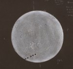 The countdown began and at 2205 UT (1705 CDT) first contact was made on the NE solar limb. Just as it bit a little more into the disk, the first cloud rolled across my view preventing me from witnessing the progression into (and including) second contact. It was disappointing as I wanted to recreate Capt. Cook’s and Charles Green’s observation/sketches from 1769. I did not observe the “black drop effect”. My first instinct was to view first contact through h-alpha in an attempt to view more of Venus’ disk prior to transiting in front of the limb, but the transparency was bad and seeing was moderate so thought I would stick with white light for a crisp “entry”. Due to the dual mounting system, I could easily switch between the two filter systems in the first few minutes of contact.