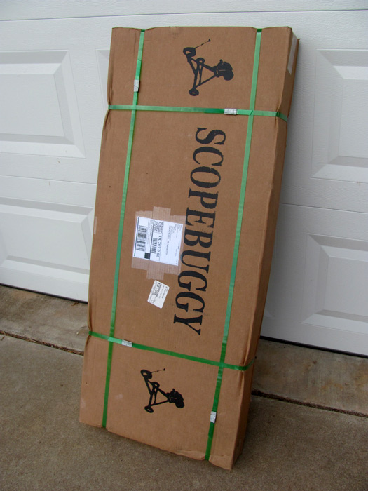 The purchase was made online at http://www.scopebuggy.com via PayPal. Their website was easy to navigate and to ensure you choose the correct type, they ask for the size and make of your telescope as well as the mount used. I ordered a standard-sized one on May 3, 2012. The confirmation received said to allow 4 weeks for delivery; however, the reviews I read stated to expect 6 weeks. I emailed Larry from ScopeBuggy on June 15th to inquire on the shipment date, as a tracking number was not given at time of order. Larry responded via email the same day to say shipment would be there on June 18th and gave me his phone number in case I had questions.
