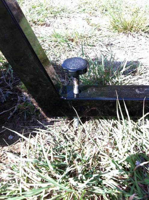 The three securing bolts can be screwed down to the ground to keep the buggy from moving while observing. I’ve heard that some people attach a crank handle onto them for faster turning.