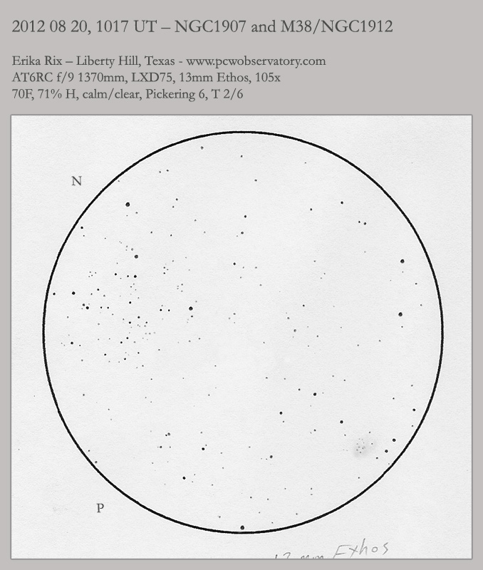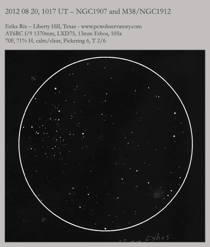 2012 08 20, 1017 UT – NGC1907/H 7.39 and M38/NGC1912