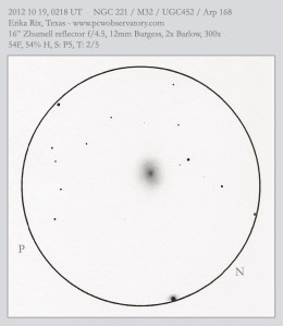 2012 10 19, 0218 UT NGC 221 / M32 / UGC452 / Arp 168