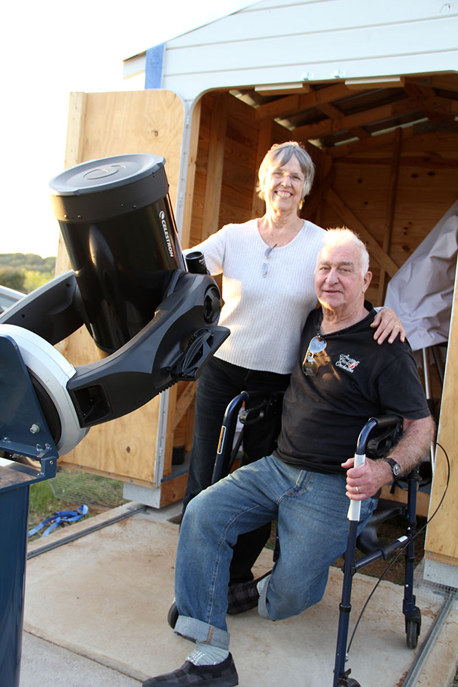 Fred and Melissa Ruof with their donated roll-off observatory and telescopes.