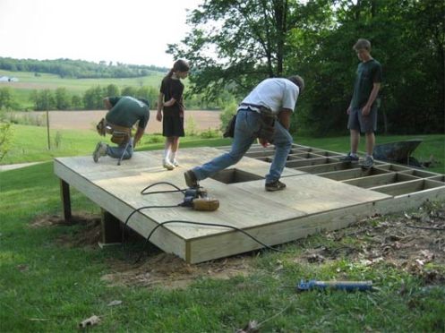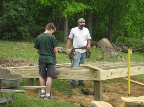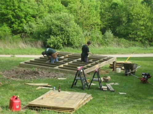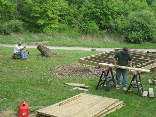 The boys are building the trusses for flooring.