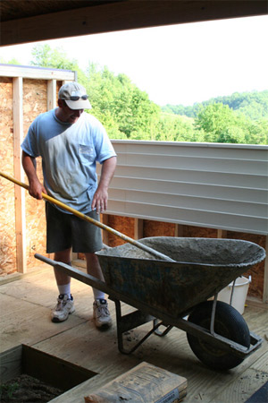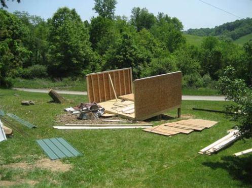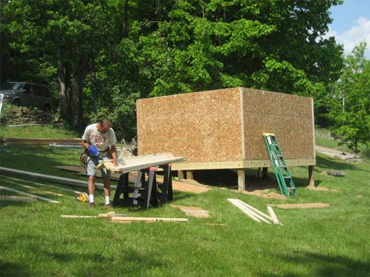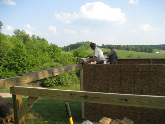 Tuesday morning, Scott and Kenny came back. I had to work that day, but Paul managed to stay home with the guys. In short order, two walls were raised.