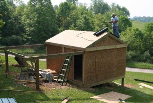 Kenny is putting the steel roof on.