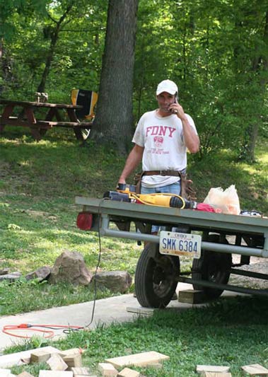 Next day, Paul had a flight and I played hooky to stay home with the guys and also to get some outside work done. After Scott and Kenny ran over to Home Depot, Kenny started on the roof.