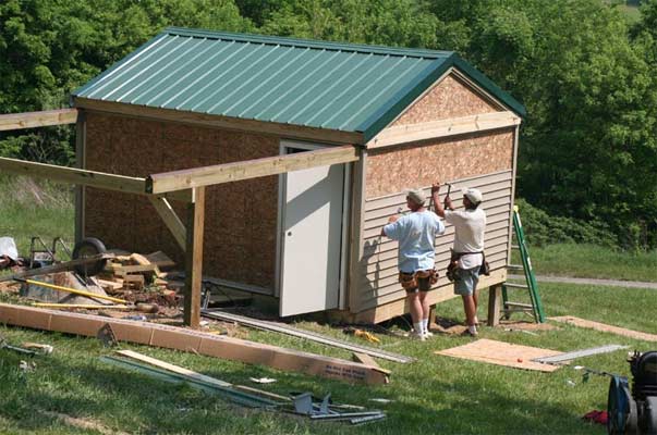They have started on the vinyl siding. It comes in a variety of colors. We were happy that there was a color that matches our house. www.backyardobservatories.com/siding%20colors.htm