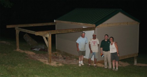This would be the end of day one’s construction. The gang stayed for supper, which was a joint effort for a cookout. Paul and I hated to see them all go home.