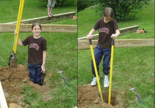The youngest of the BYO clan, Nikki, is showing them how you properly dig a hole.
