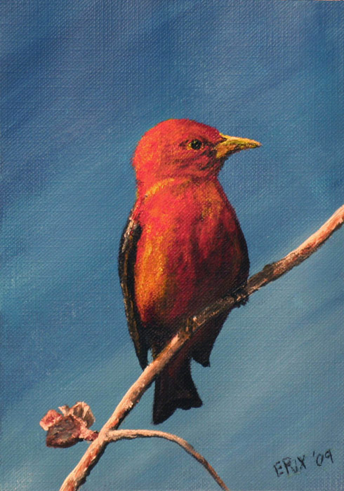 » Acrylics on Paint Greeting Card Stock – Scarlet Tanager
