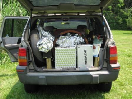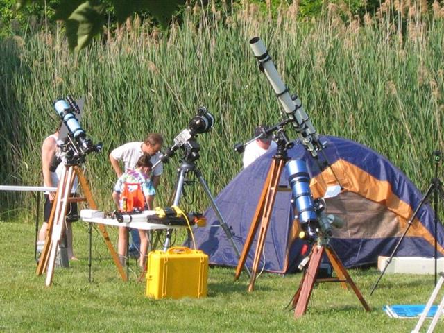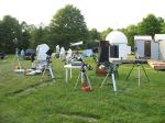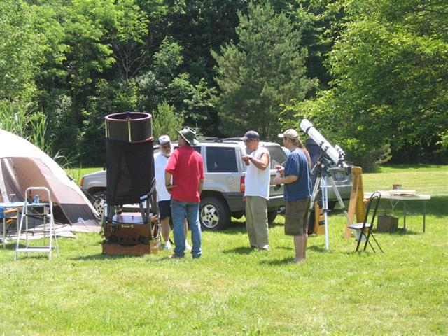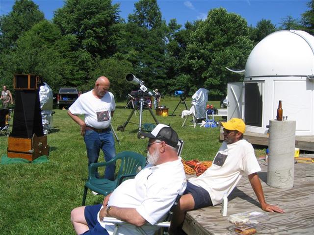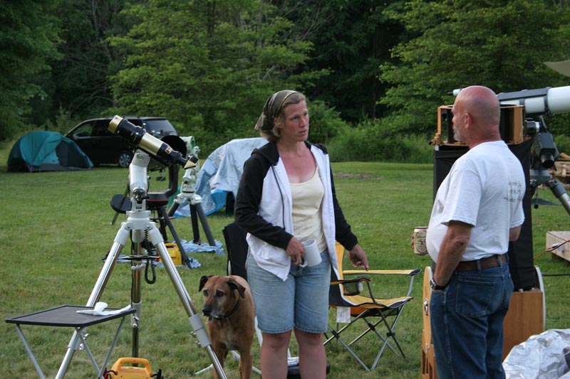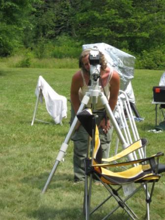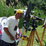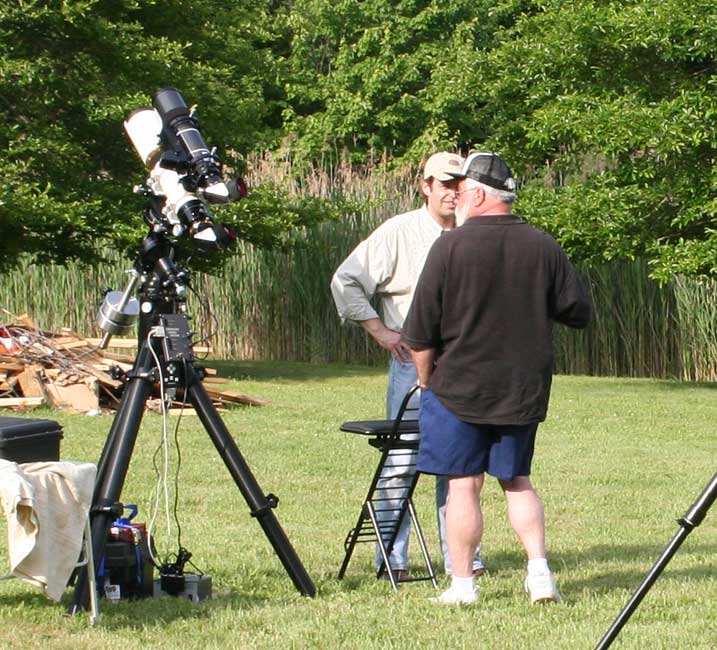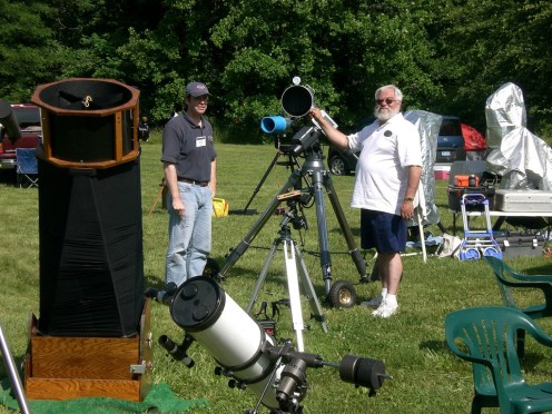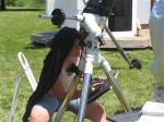 After the initial presentation, there were three telescopes set up for viewing: one for projection with an 8″ reflector, a Solarmax 60mm, and then a homemade 6-8″ solar “reflector” without a mirror reflective coating that was made for solar observing. A demonstration was given on the dangers of solar observing without proper equipment by holding a piece of bark behind the eyepiece and how quickly it scorched and started smoking.