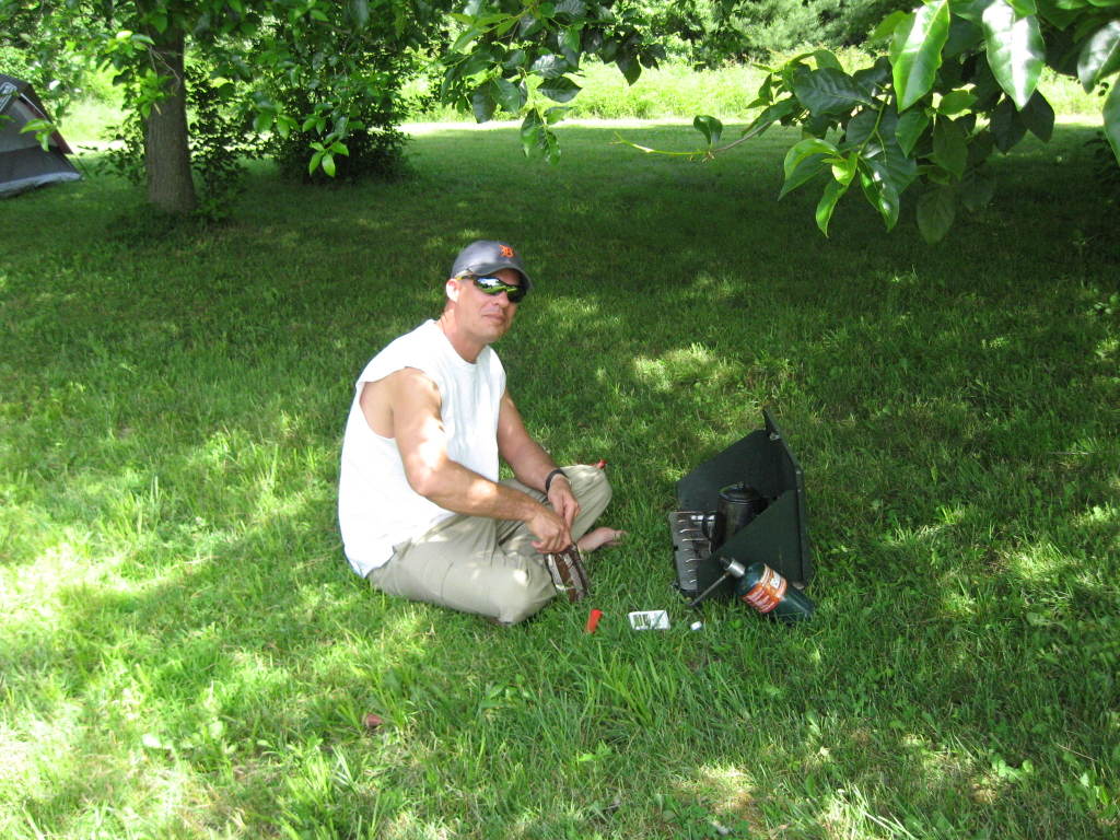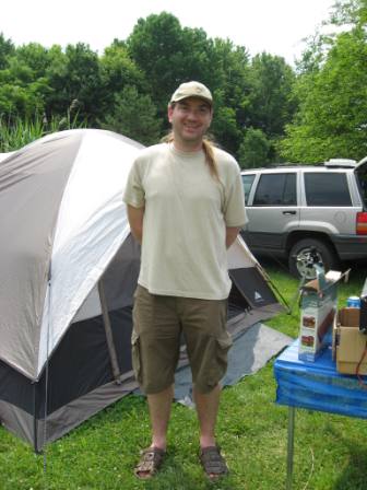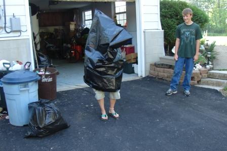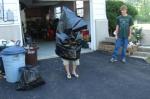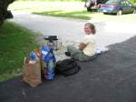 Two were set off. One used the electric from his car battery as an igniter. This one (shown in the photo) was made from a plastic soda bottle, water, and air. The pressure of the air combined with the compressible water was used to launch the rocket. (Hint: we were told that when he was ten years old and experimented, he found that jello worked better than water!)